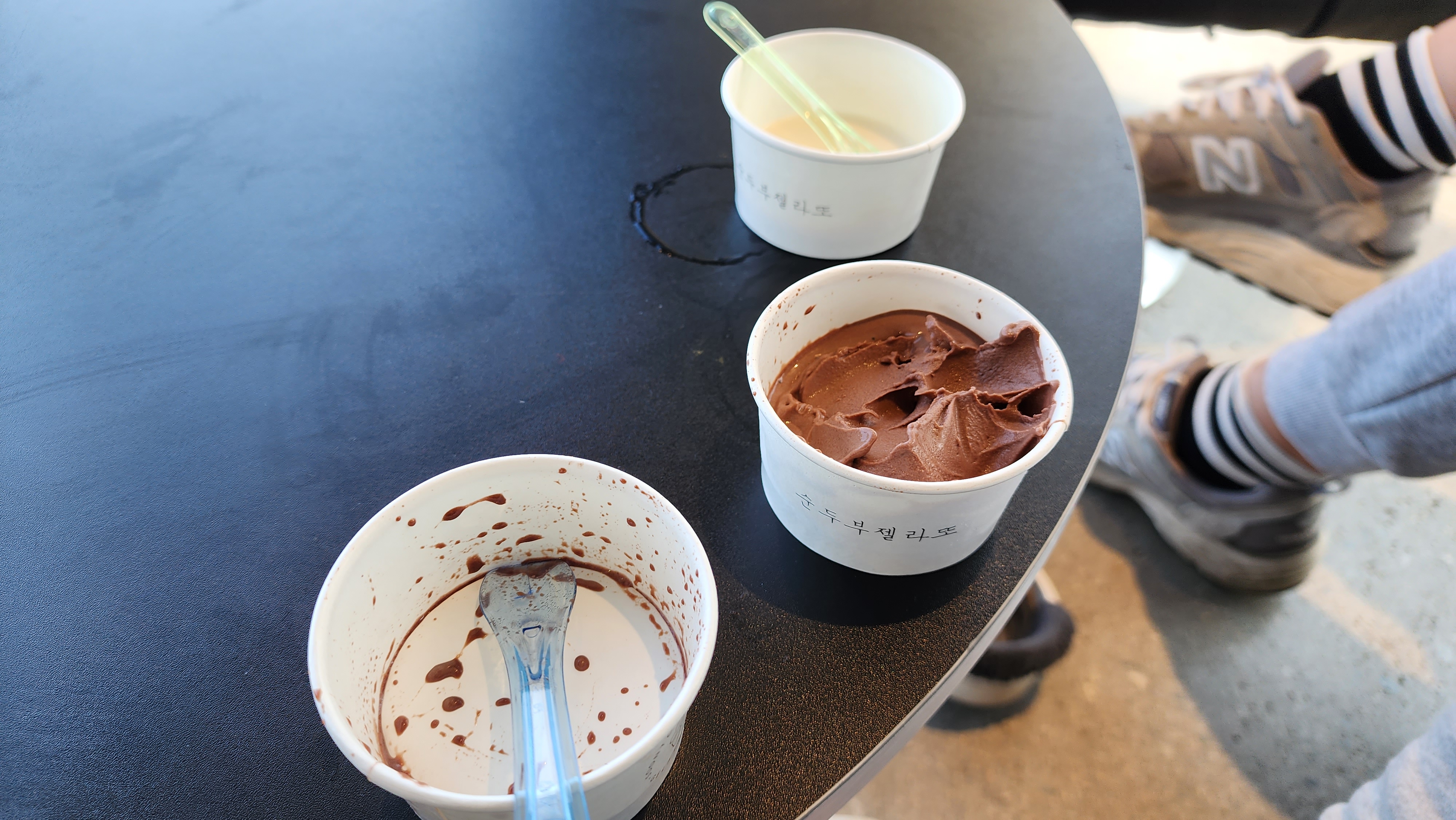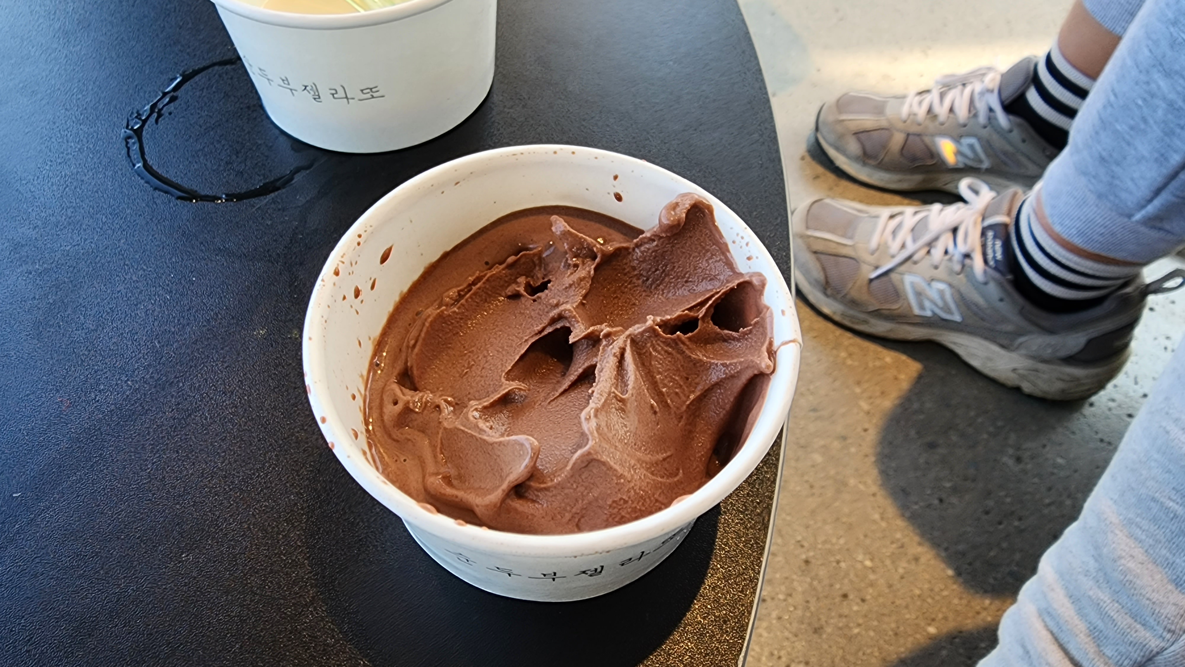 초코맛 녹차맛 등 다양한 젤라또를 팔고 있다. 순두부 젤라또라고 하는데 순두무맛은 거의 느끼지 못하는데 부드럽다.