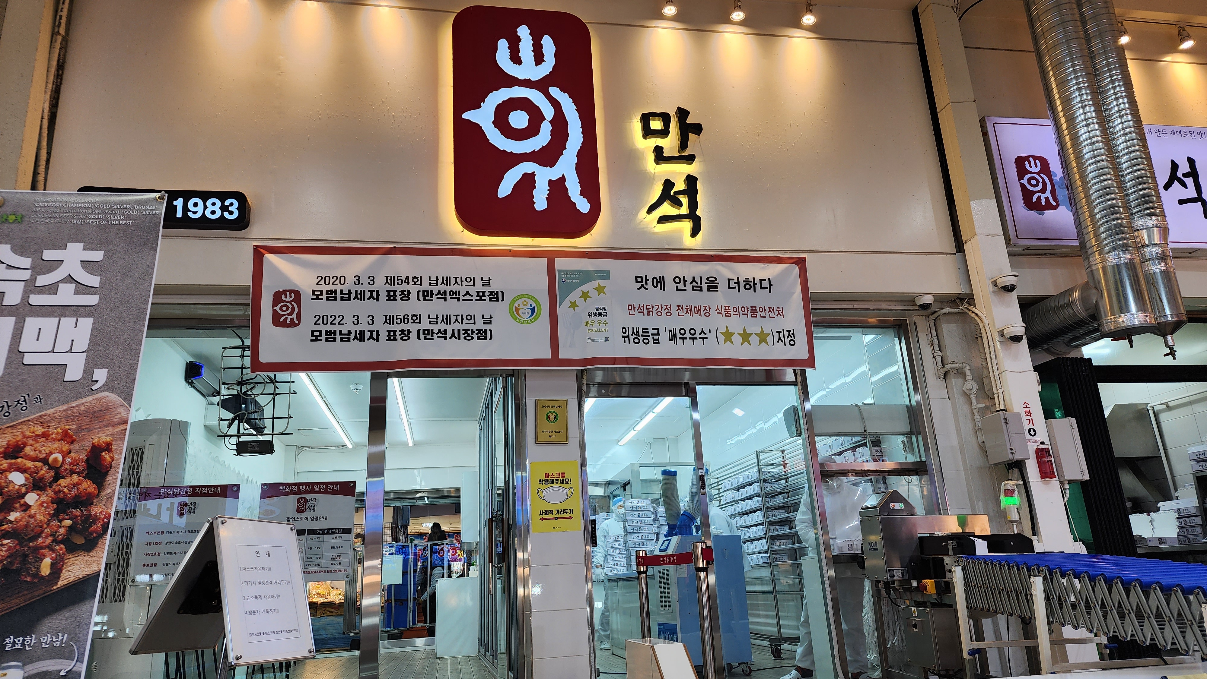 역시나 만석닭강정은 속초중앙시장 관광객이면 한박스씩 다 가지고 다닌다.