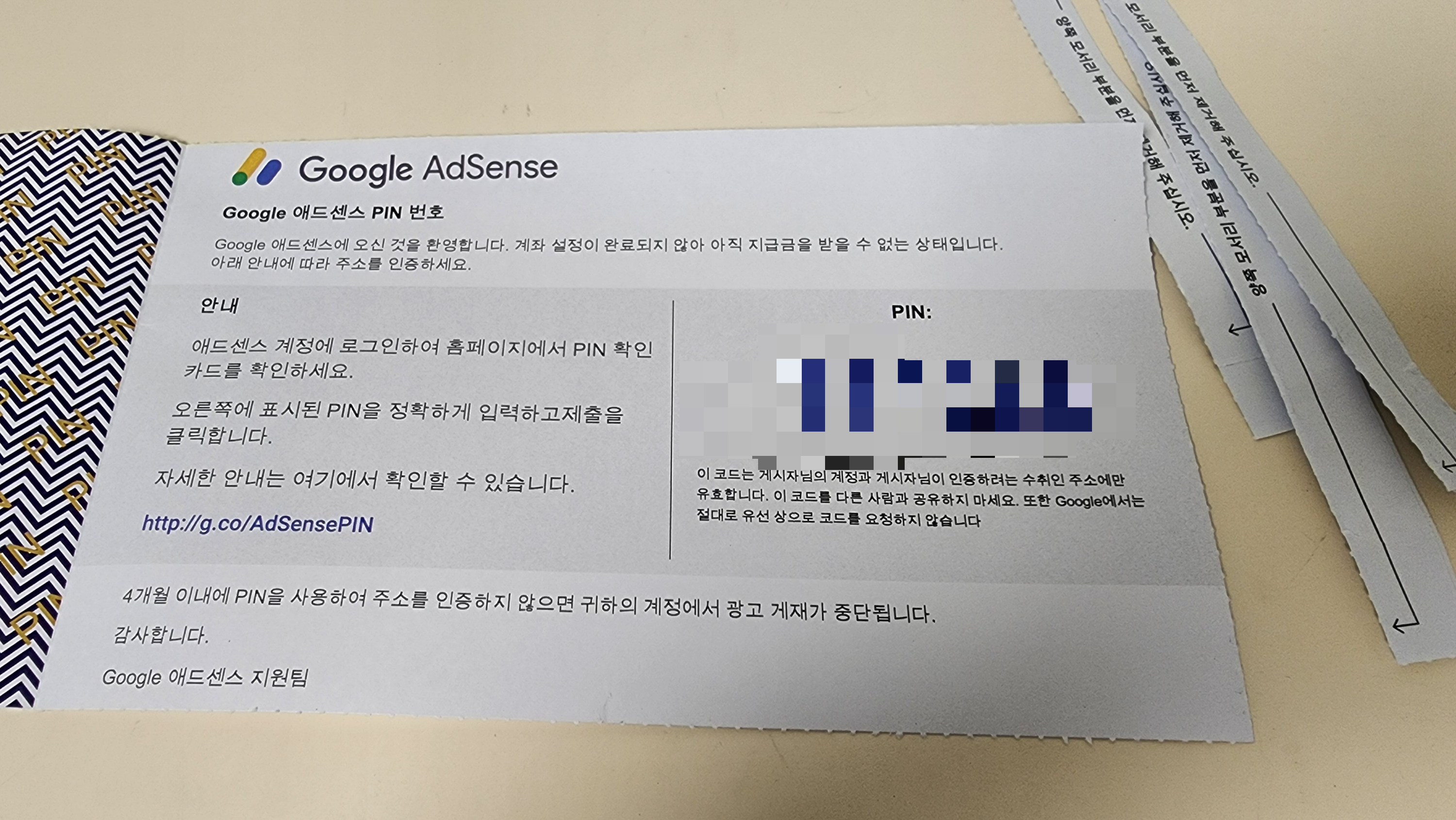 핀번호를 입력하면 된다고 한다. 구글애드센스를 들어가서 작업을 클릭