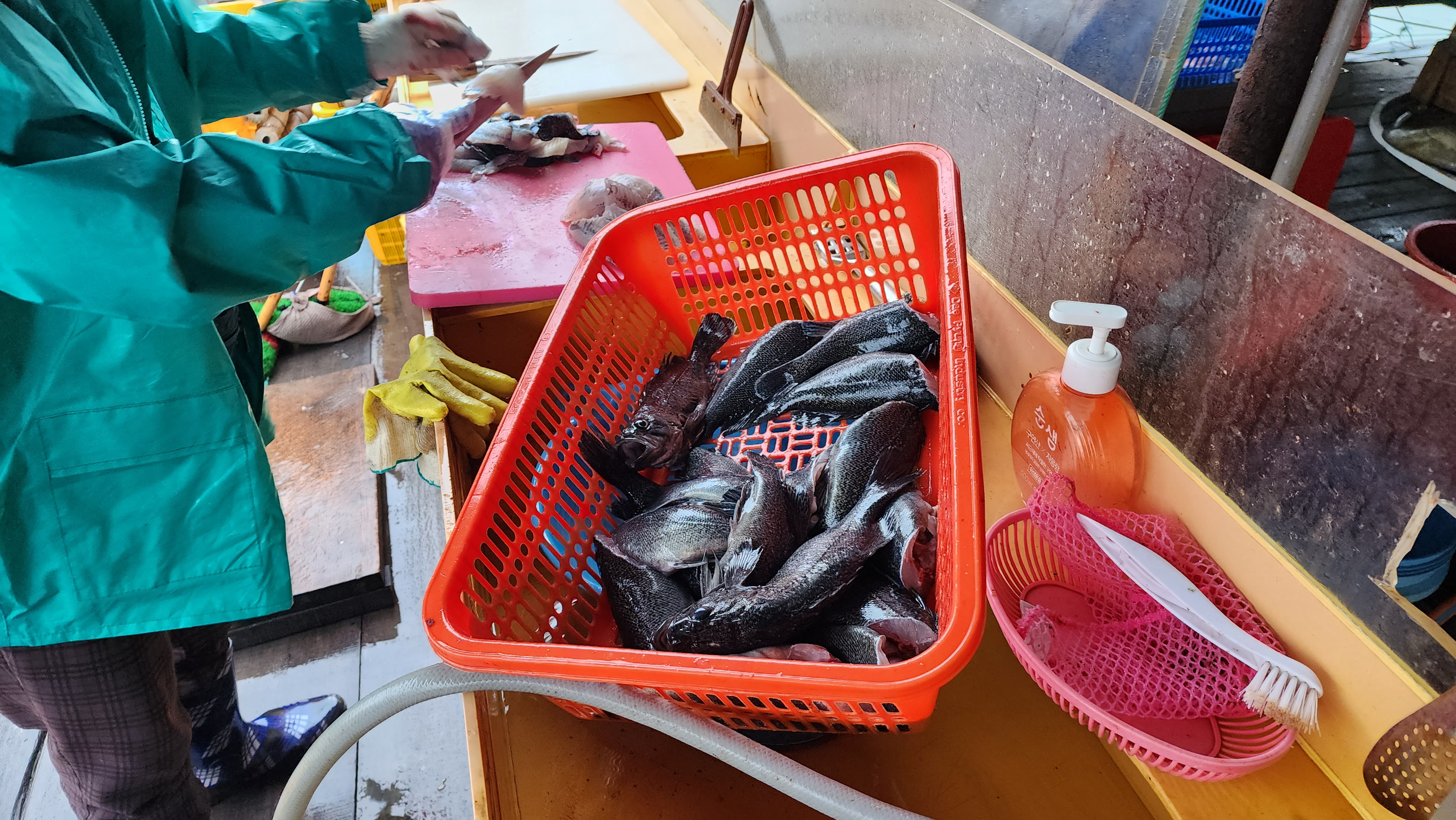 암튼 많이 잡았다. 크기는 좀 작다. 양식이라서 그런지 좀 작아서 먹을게 있을까 싶다.