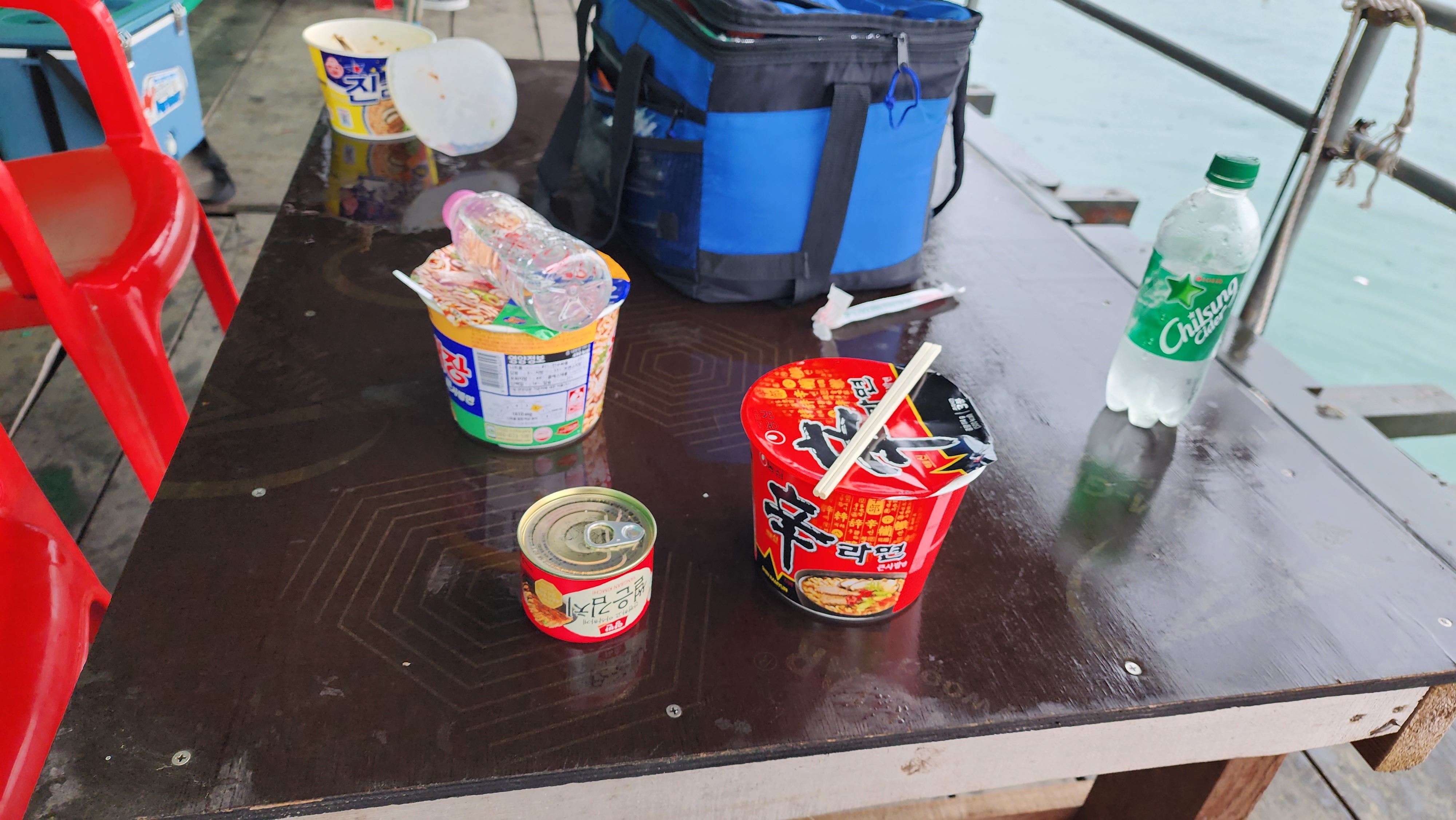 컵라면은 우리가 준비했고, 뜨거운물을 제공해준다.