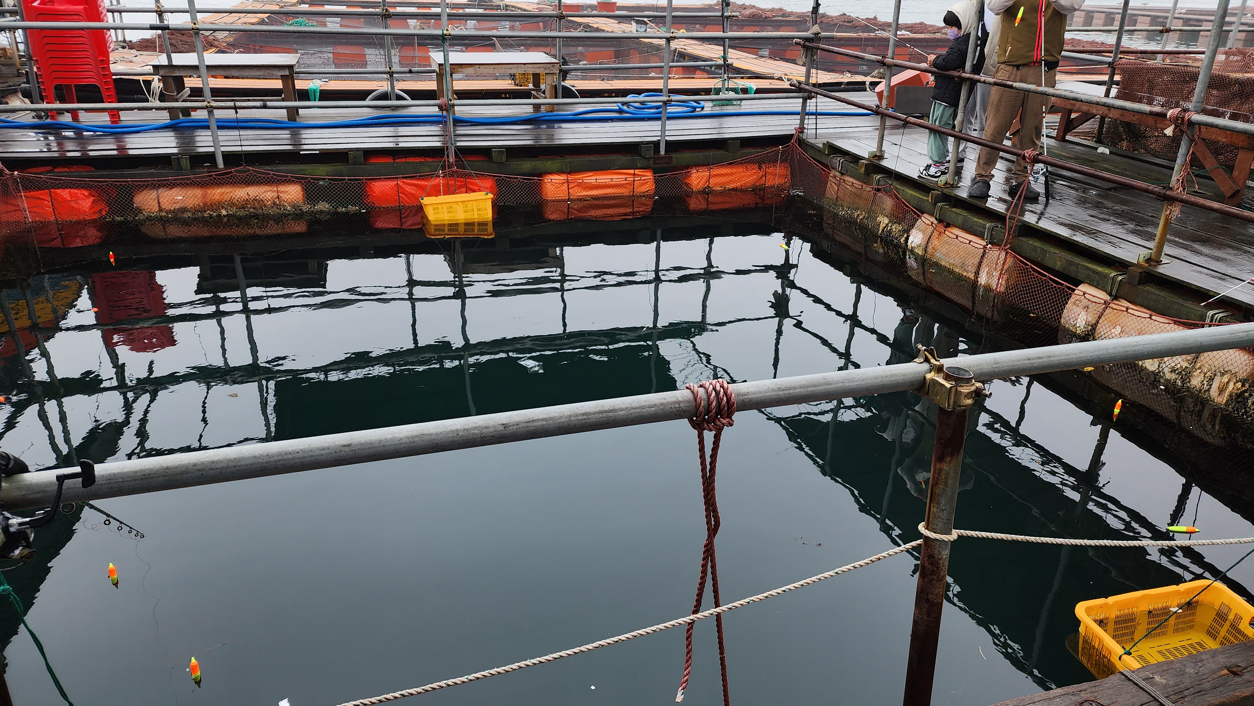 이런 사각으로 제작된 낚시터에서 가두리 낚시를 한다.