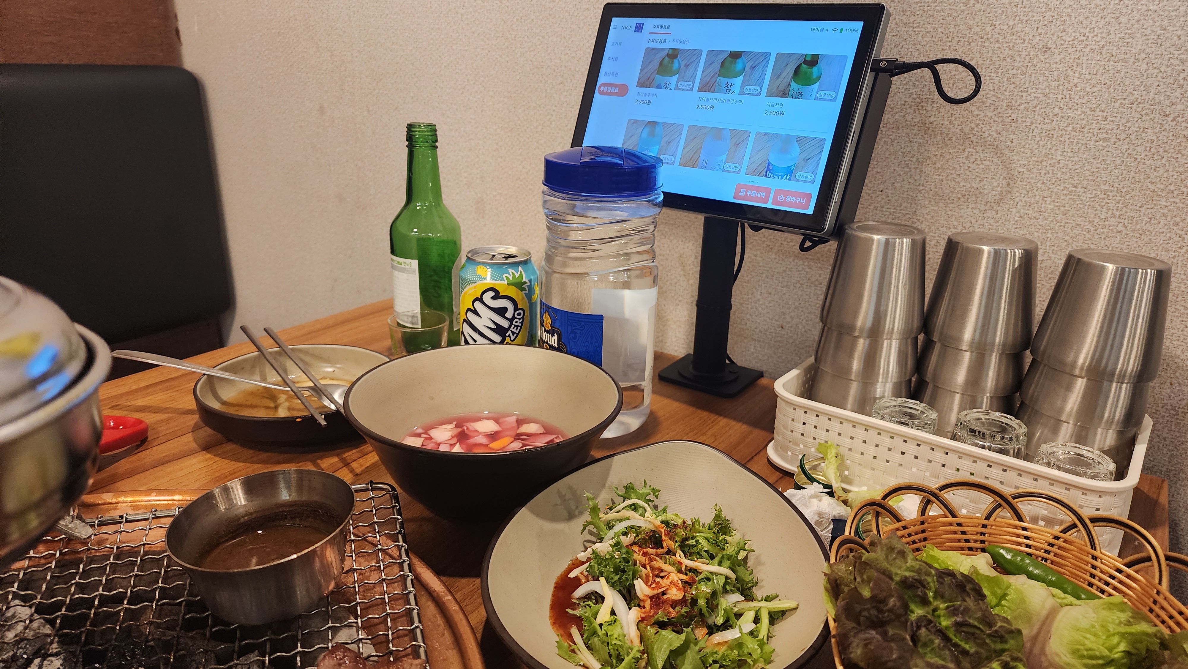 요즘 주문은 이런 키오스크 테블릿으로 하는데 여기도 이런 구조다.