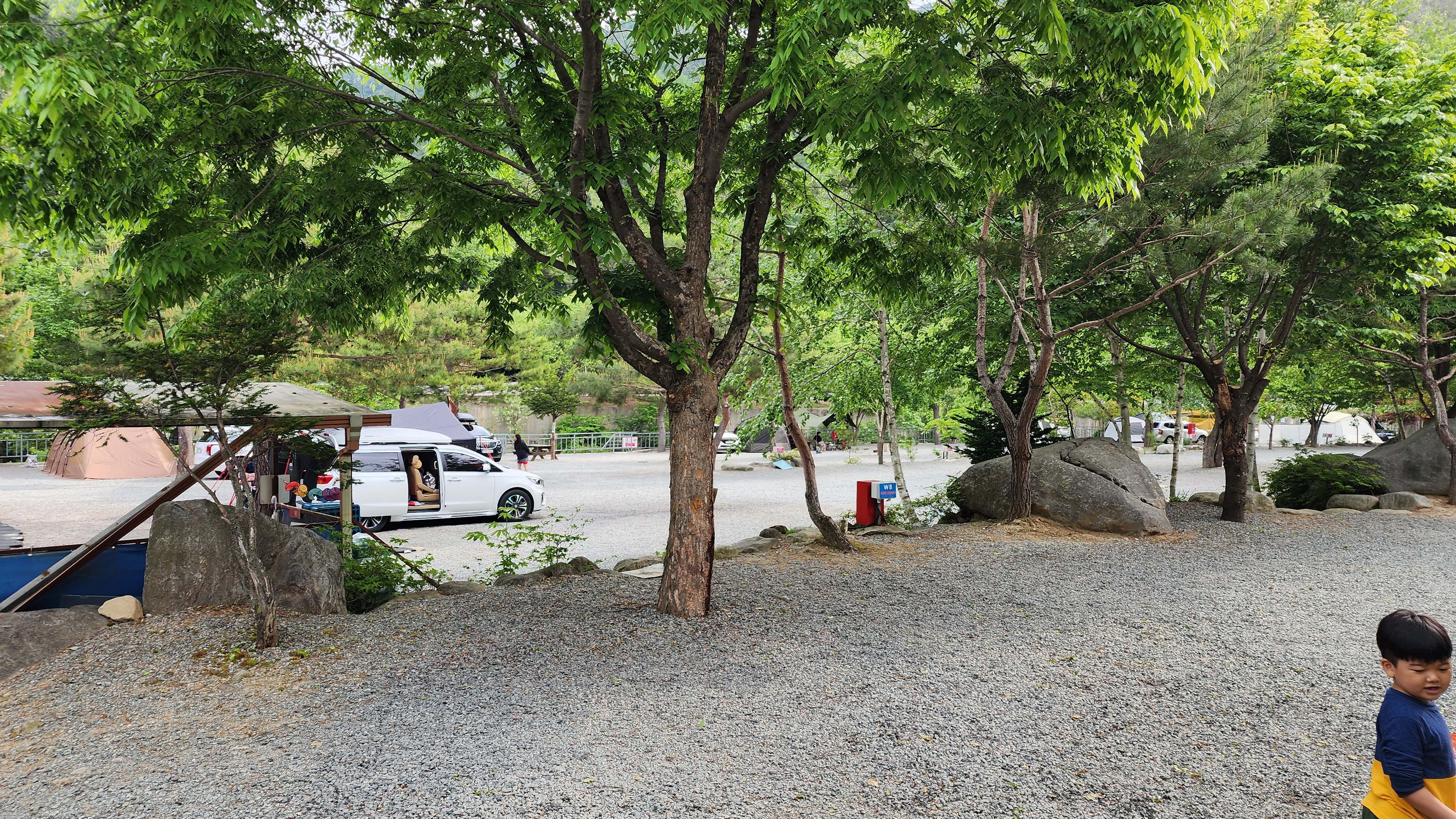 신생캠핑장에서는 볼 수 없는 아주 크고 가지가 많은 나무그늘이 있어서 너무 시원하다.