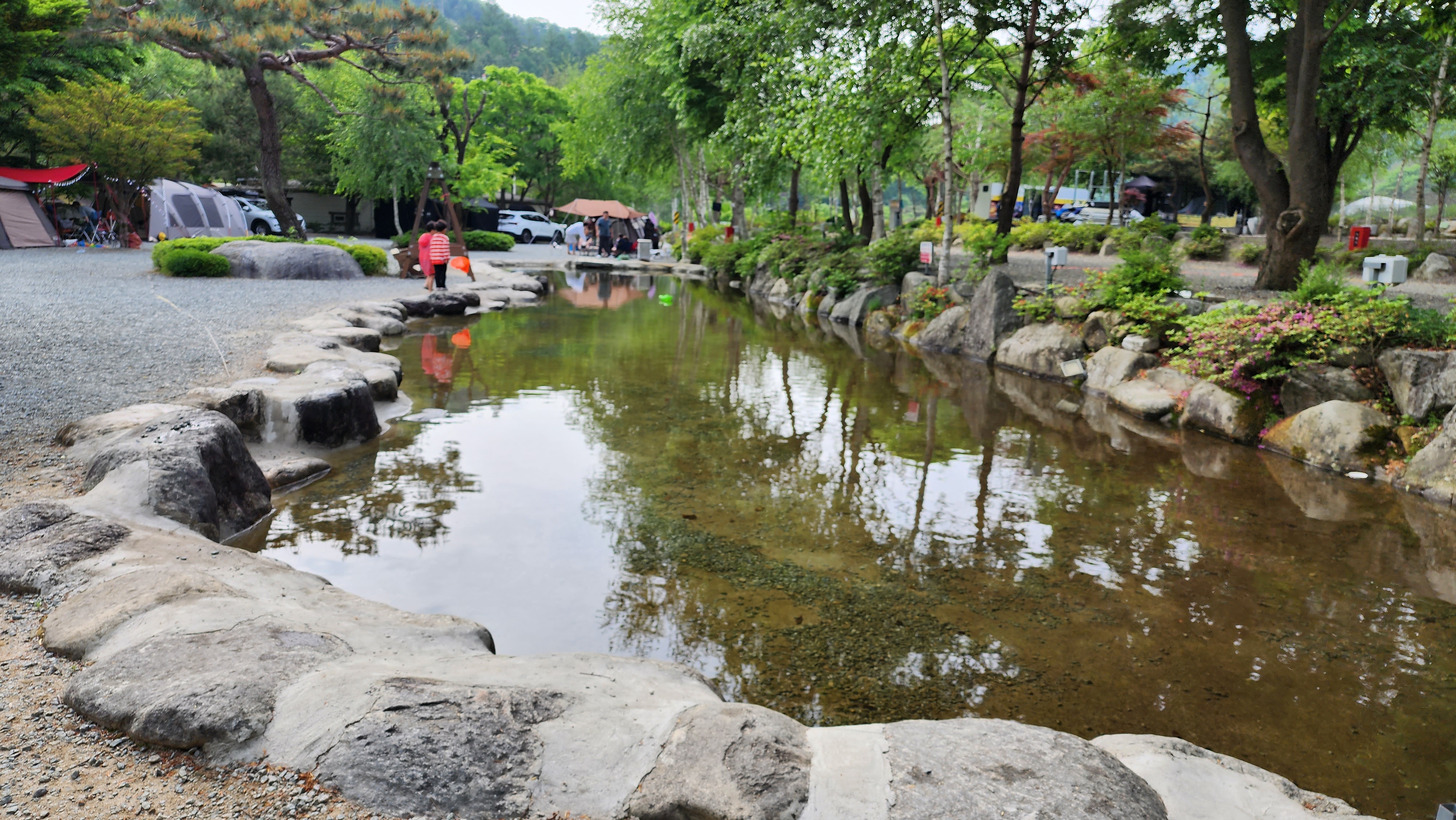 앞쪽에는 계곡이 있고, 캠핑장안에는 작은 연못이 있는데 거기서 아이들 수영도 가능할것 같다.