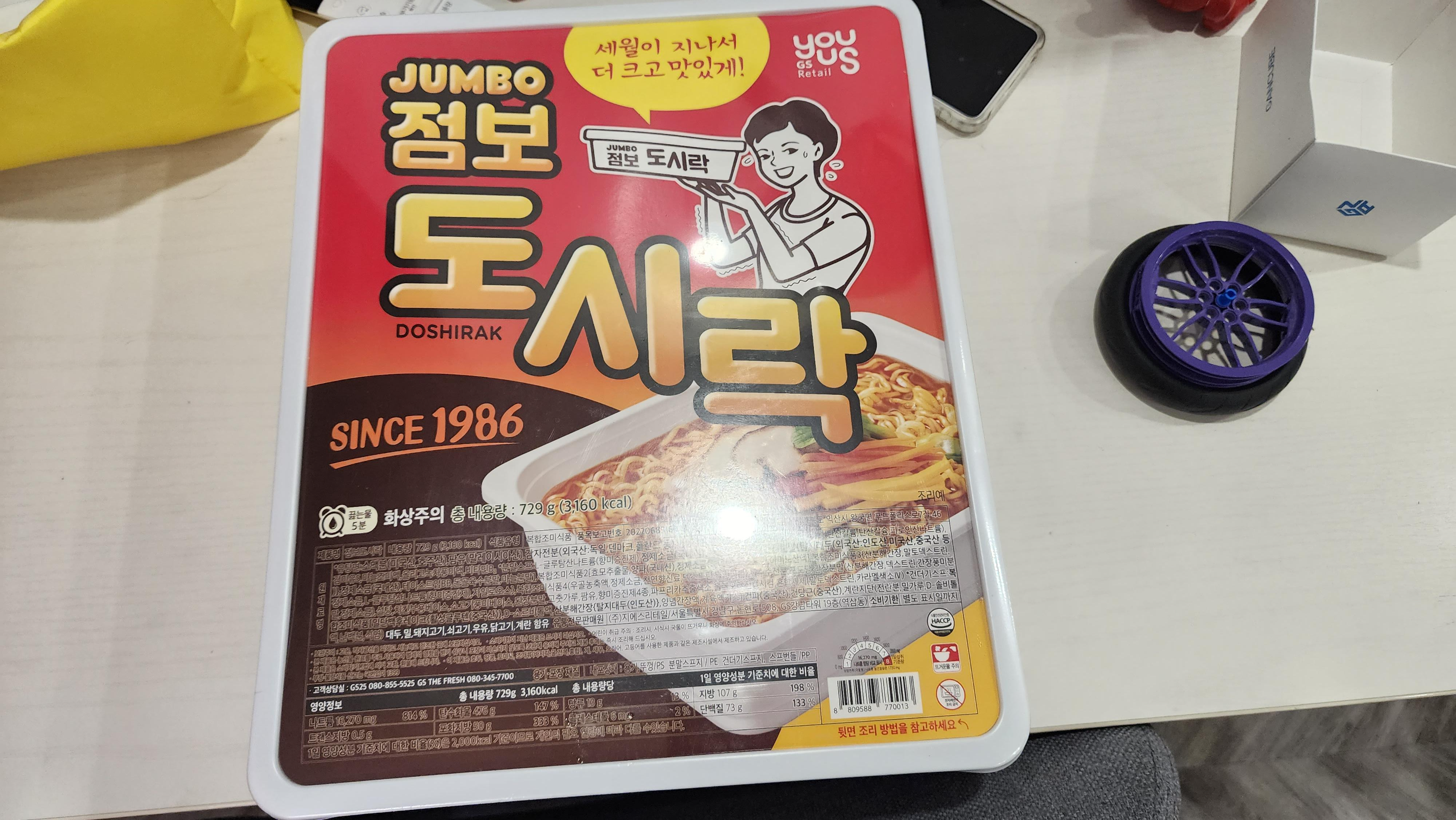 요즘 핫하다던 그 GS편의점 점보도시락 라면이다.