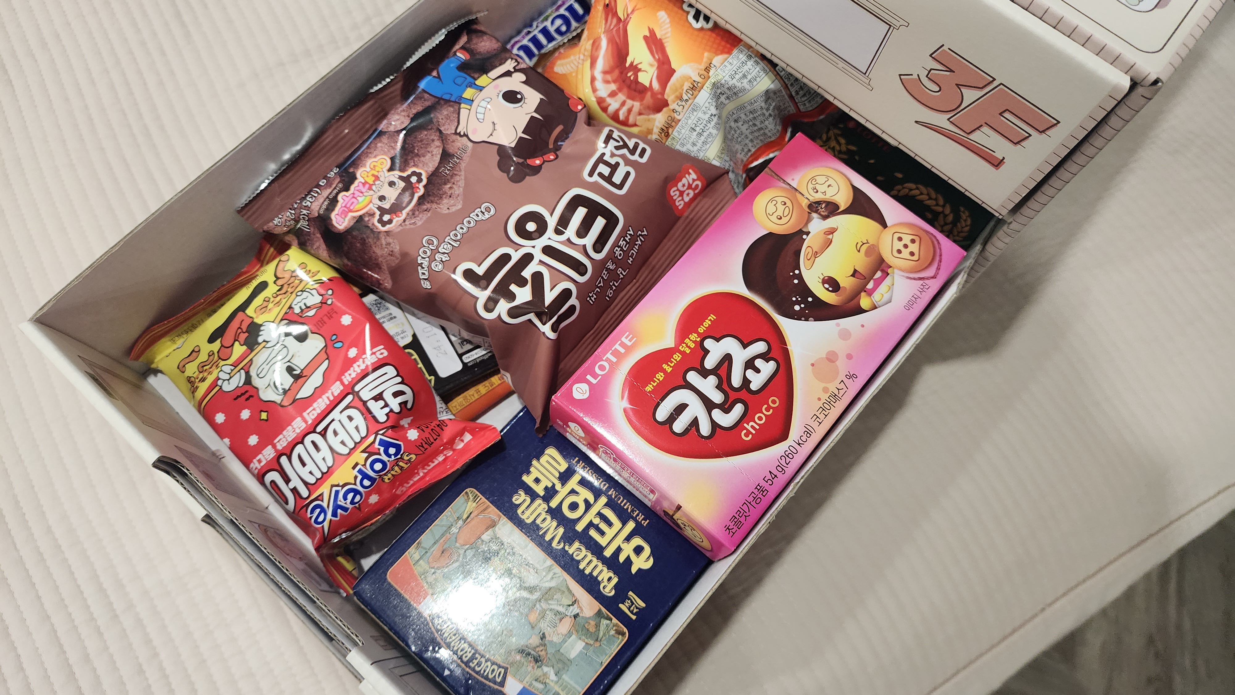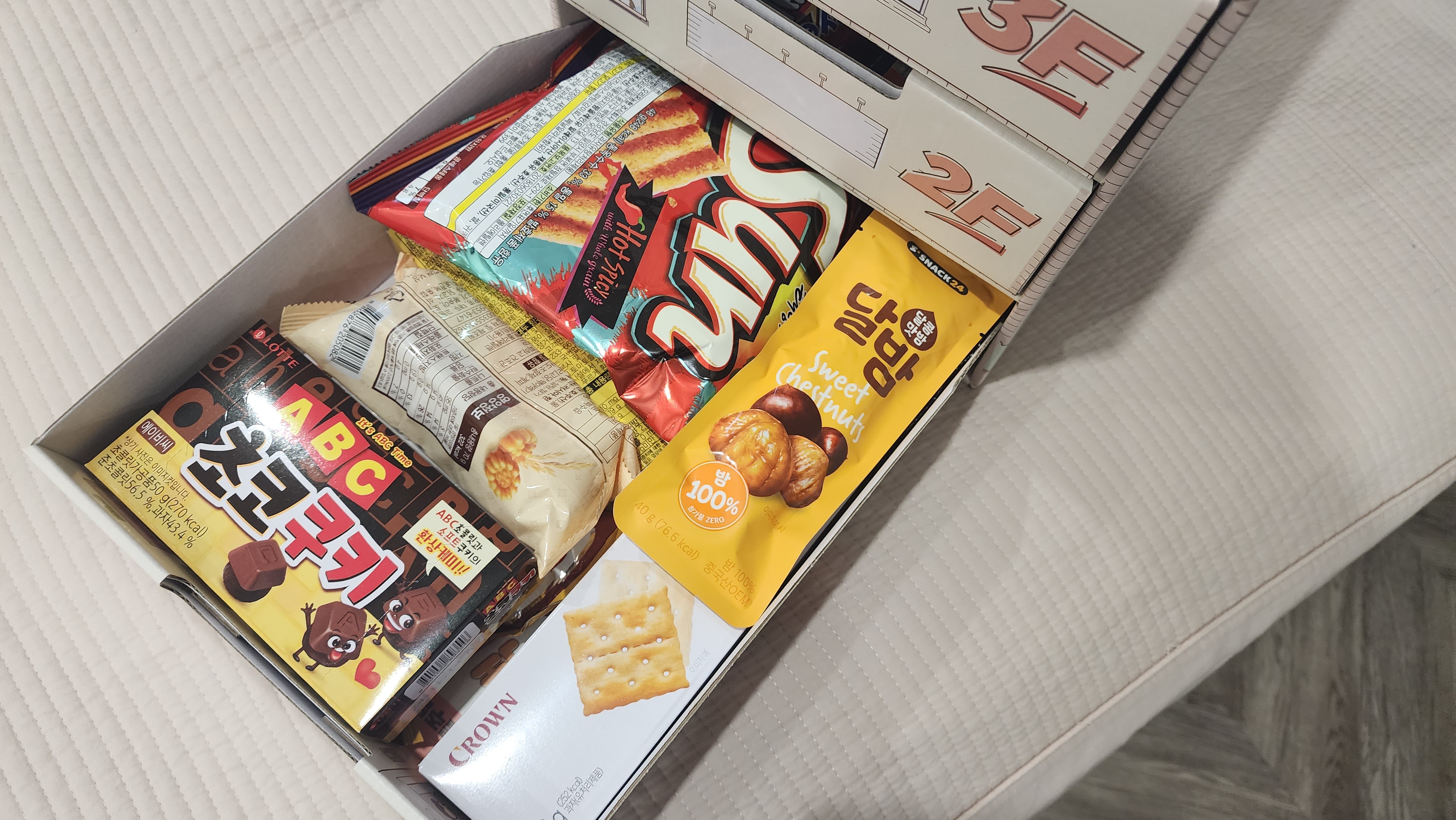 다양한 브랜드의 과자가 들어 있다.