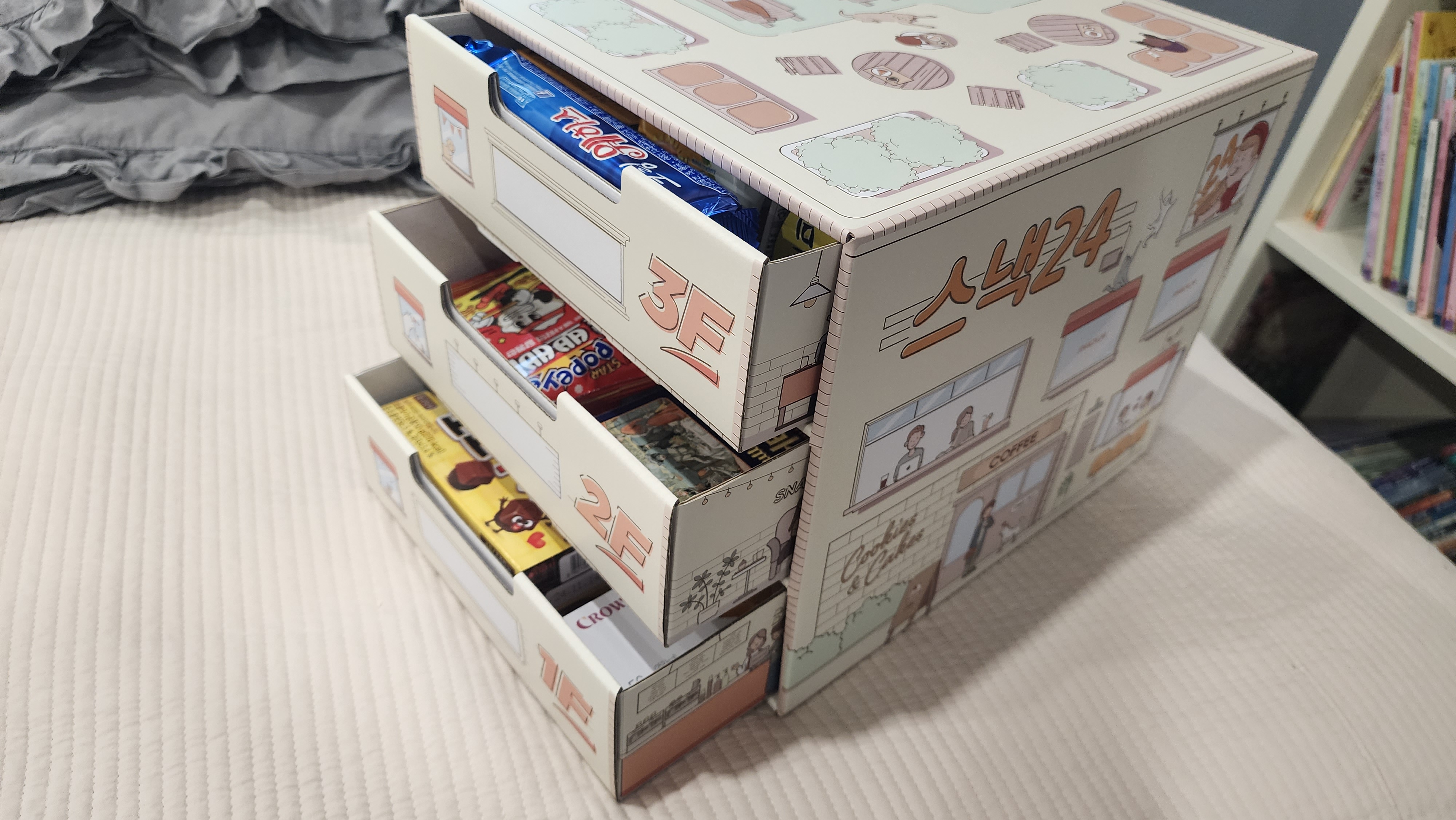 암튼, 스낵24에서 3단 서랍 과자 빌딩 제품이라고 한다.