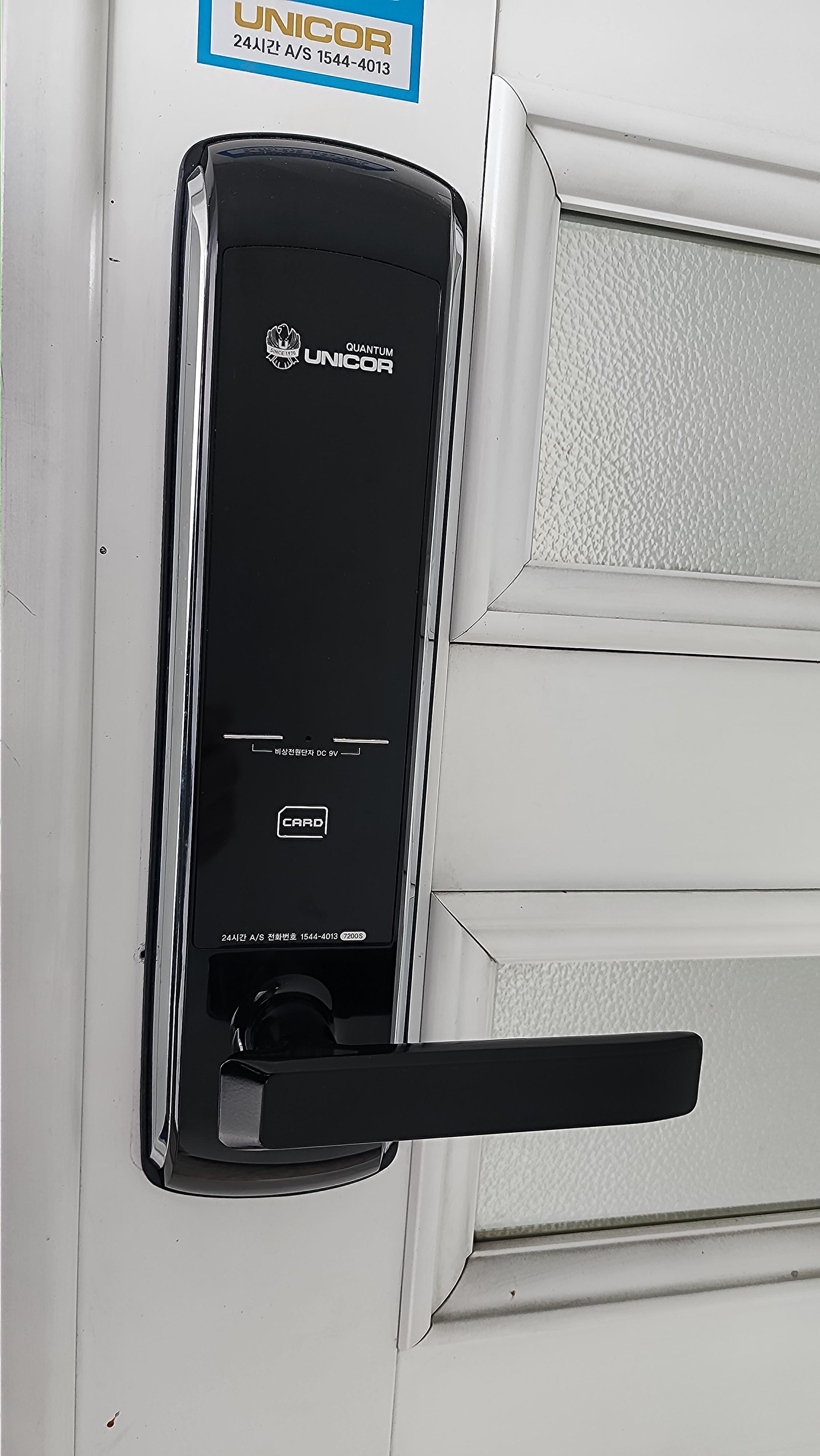 유니코 도어락 제품번호는 7200s라고 적혀 있다.