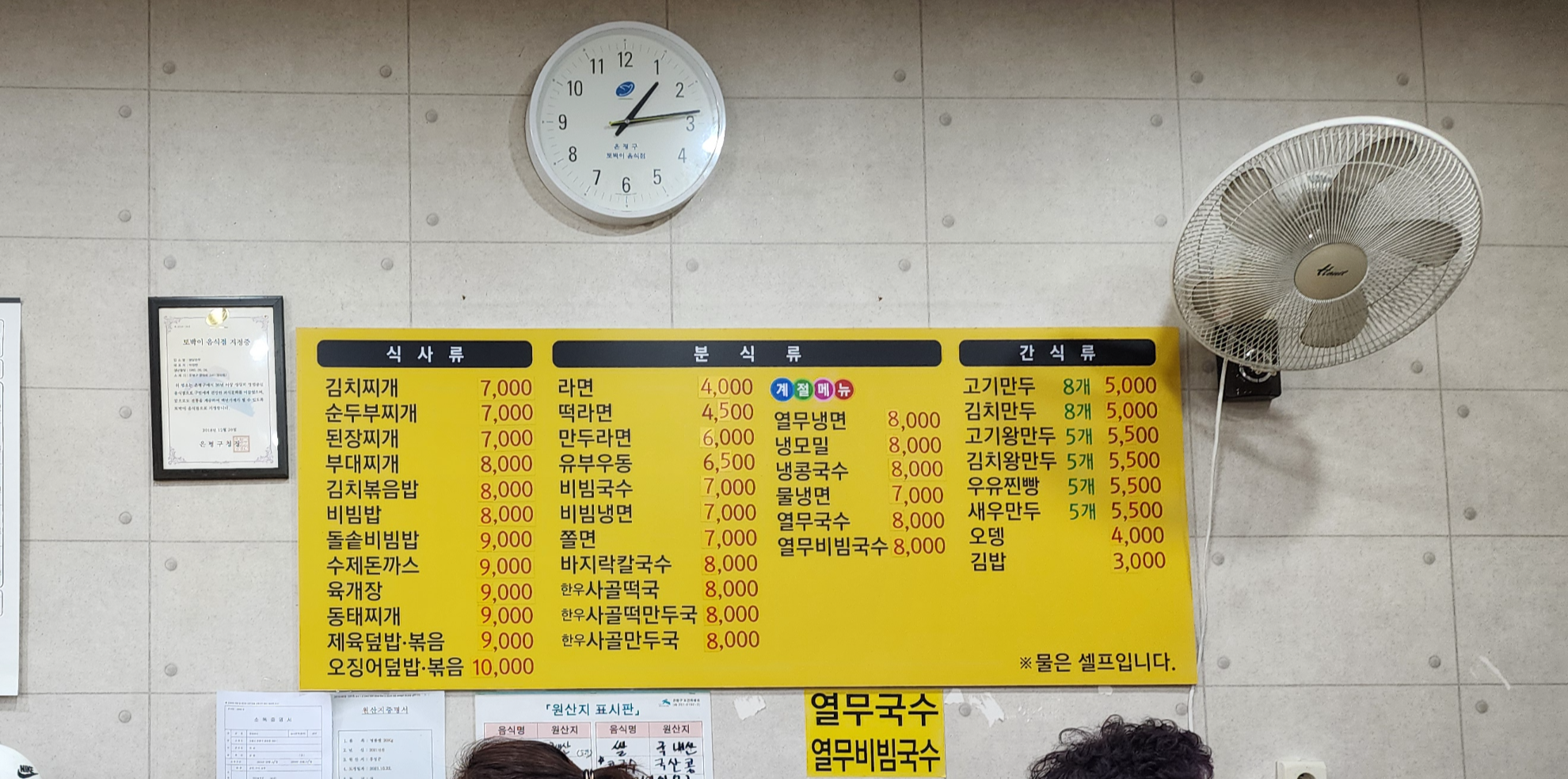 메뉴는 보통이 식당 분식집 메뉴와 비슷하다.
