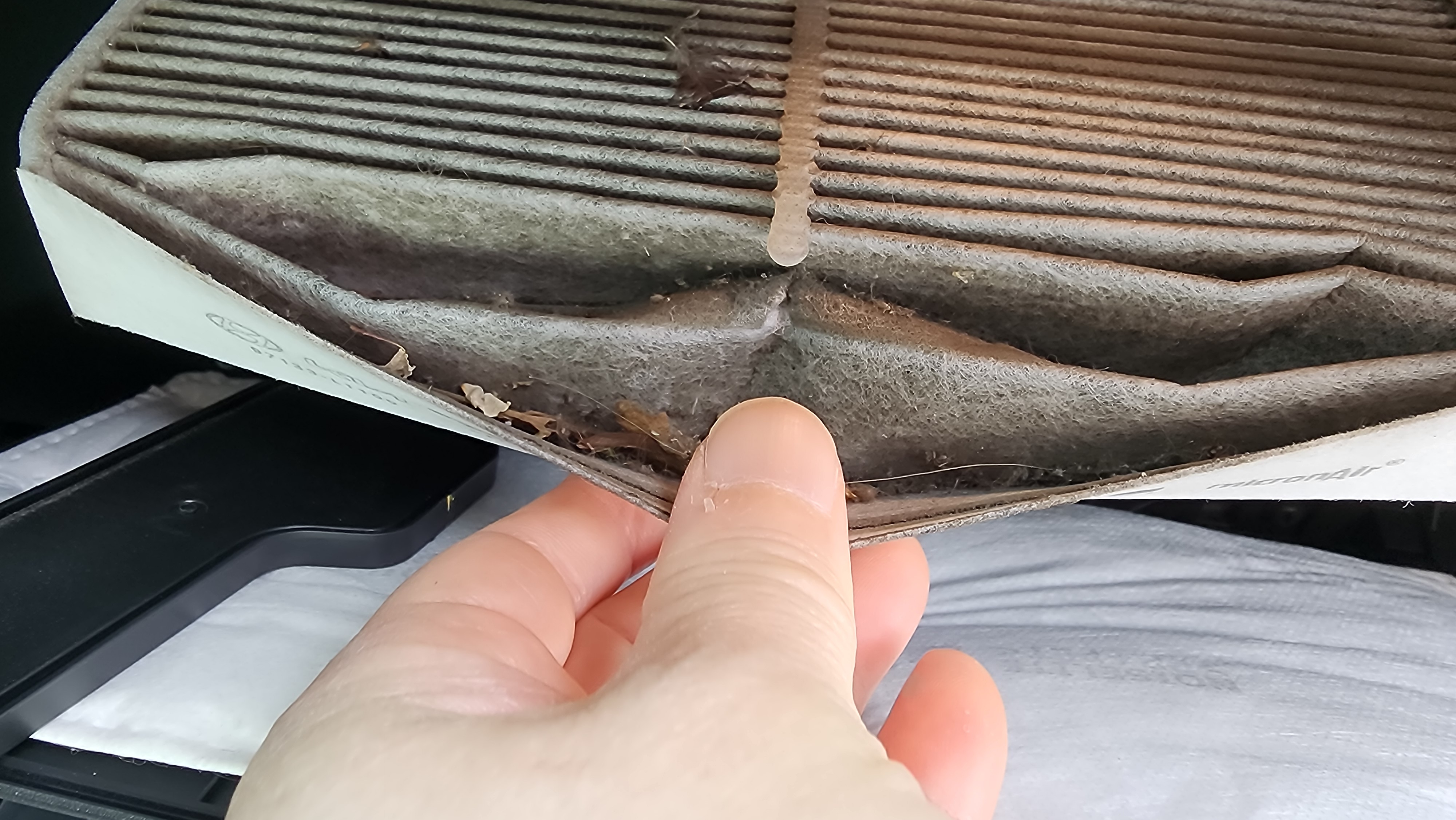 위에 사진의 모습이 고리를 빼면 보인다. 저기 보이는 부분이 바로 에어컨필터가 있는 공간이다.