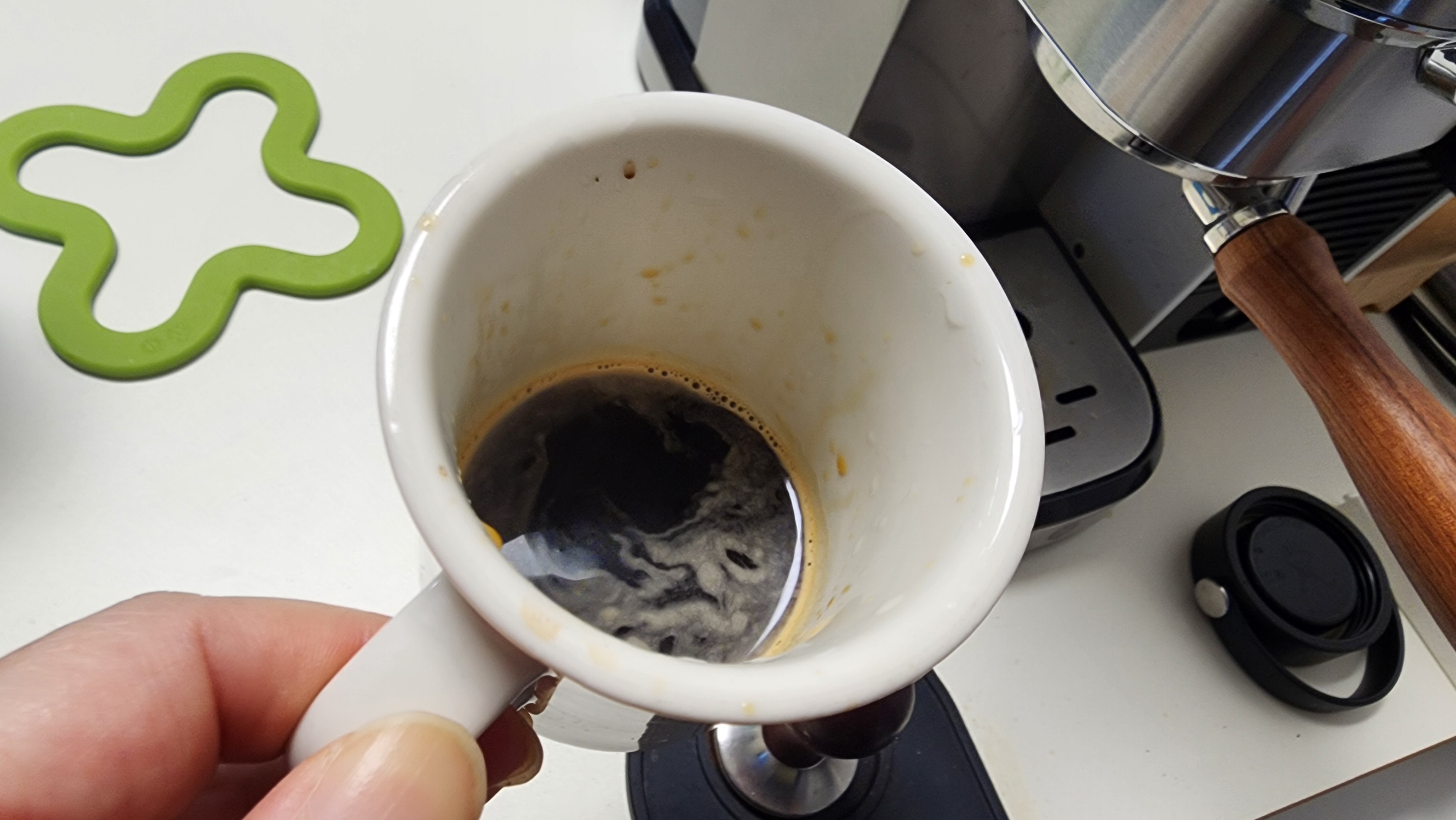 투샷으로 뽑았다. 물이 별로 많지 않다. 생각보다 조금 나와서 투샷으로 뽑아서 뜨거운물을 부어 마셔봤다.