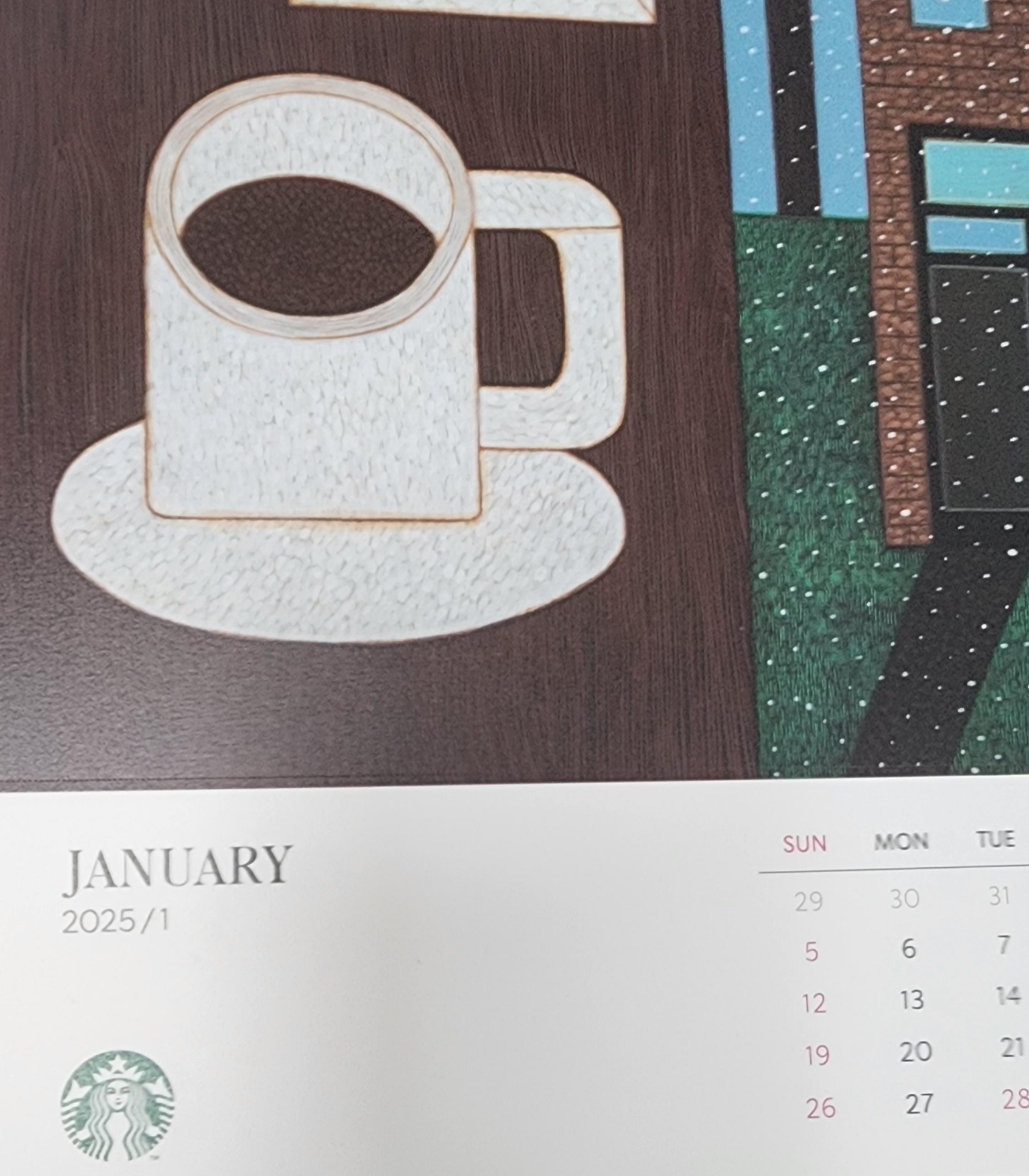 2025년을 맞이해서 스타벅스 벽걸이 달력을 달아줬다.