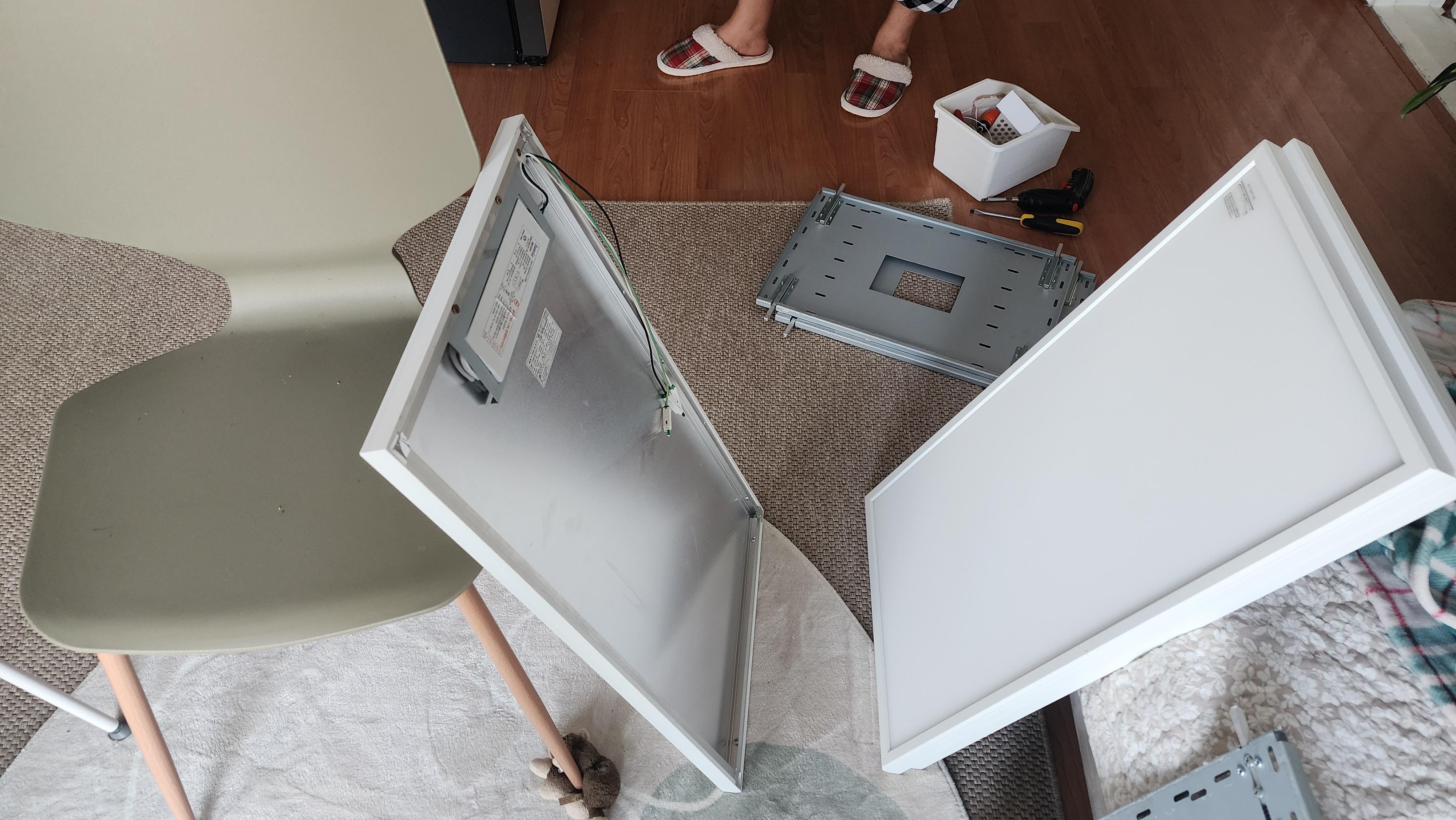 기존의 제품을 해체하는데 꼭 현관쪽에 있는 누전차단기를 내려서 전기를 차단해야한다.