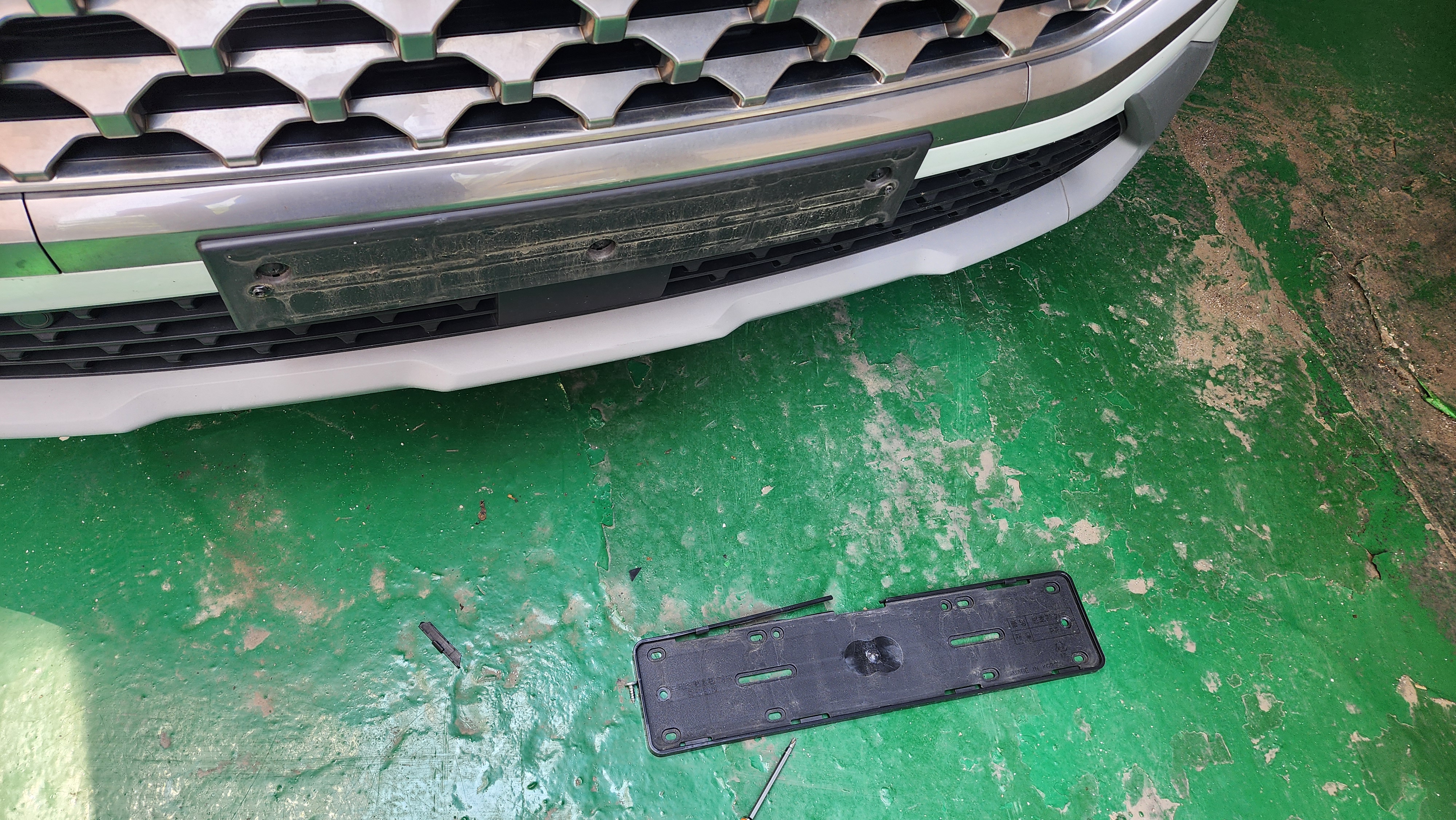 일단, 기존의 부셔진 번호판은 볼트 2개로 간단히 제거했다.