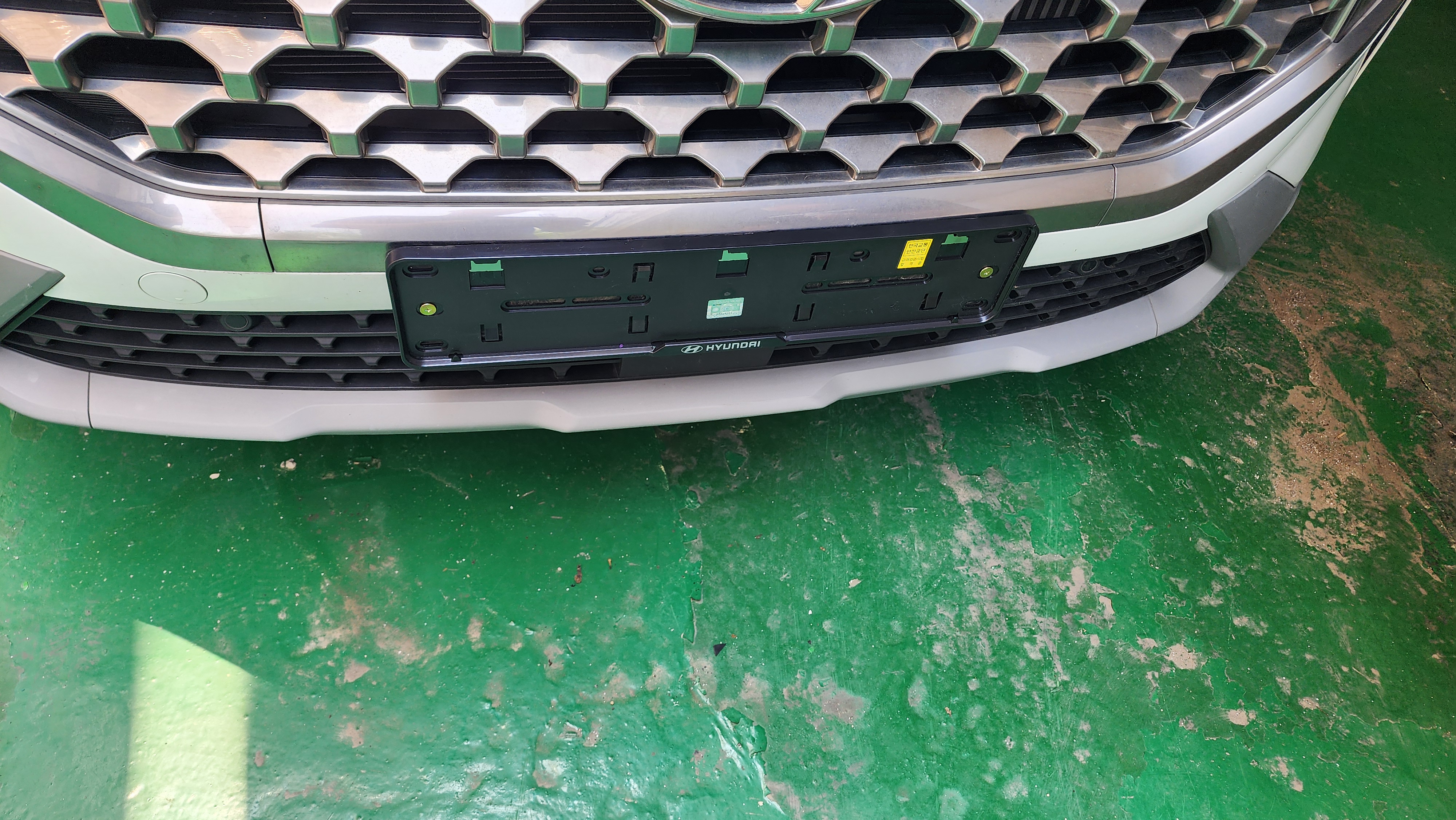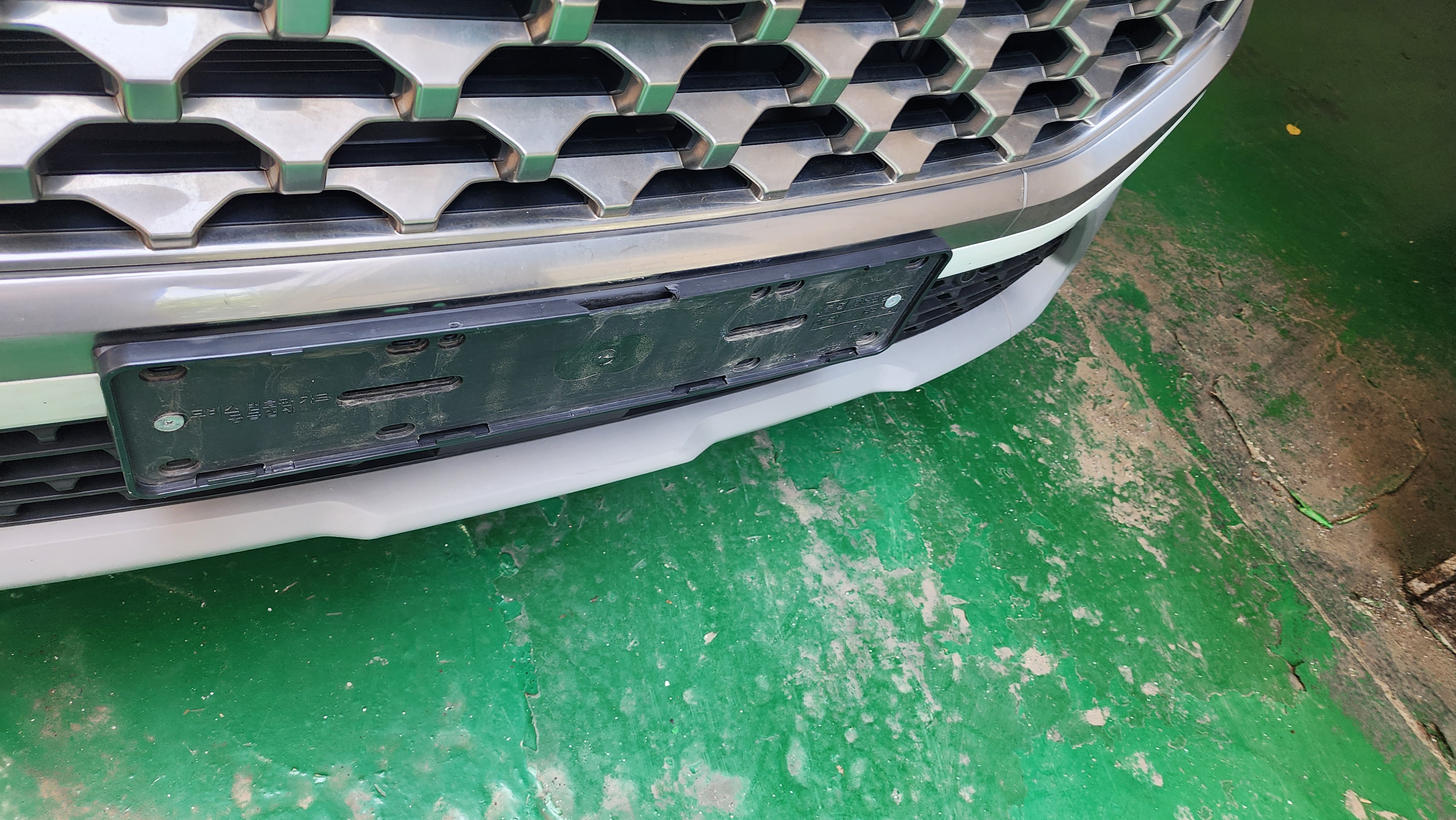 번호판가드가 살짝 부셔질정도로 사고났다. 번호판가드는 현대모비스 정품으로 플라스틱제품이다