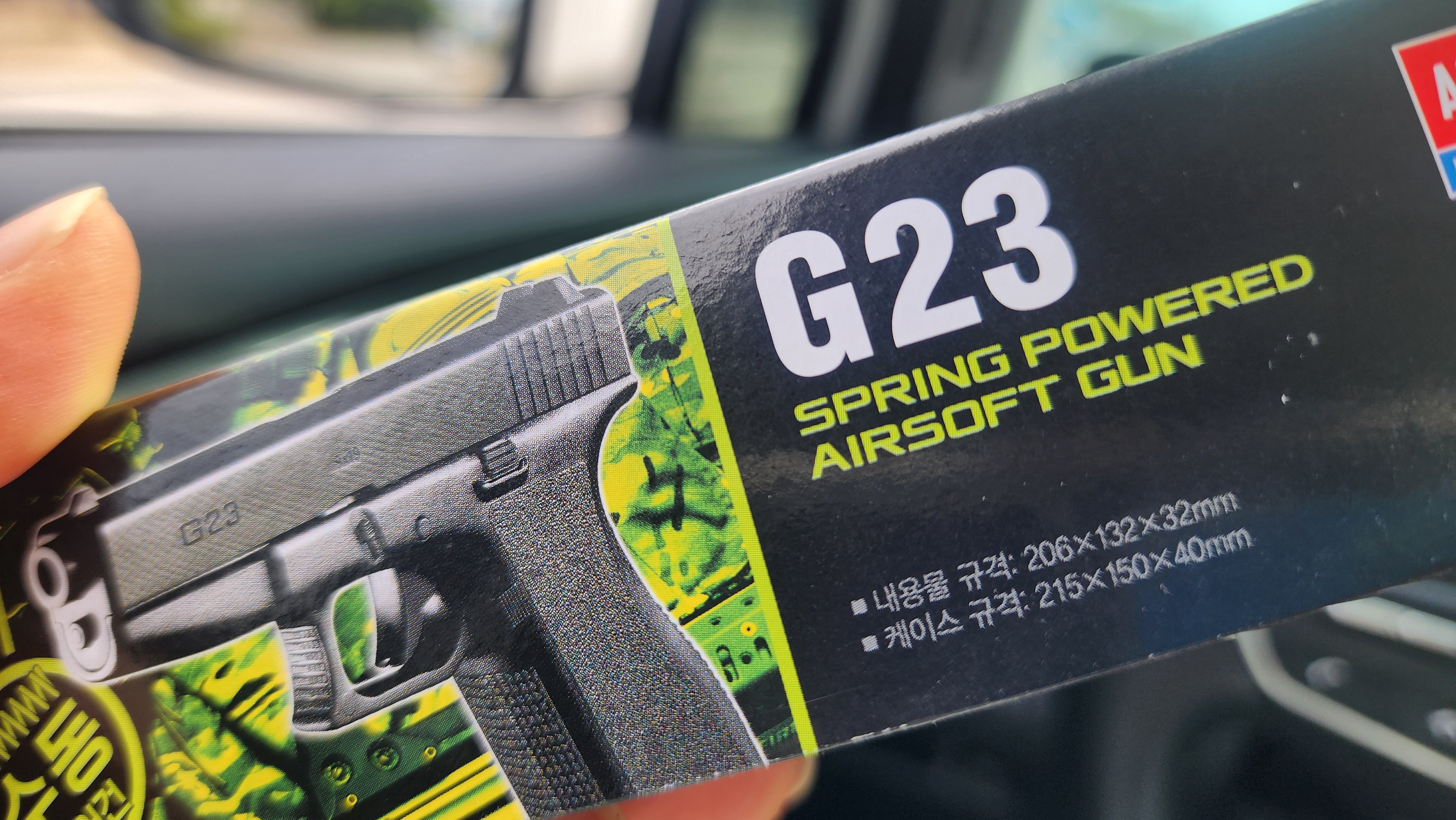 위험해서...비비탄총이지만 비비탄을 빼고 가지고 놀기로 약속받고 구입.