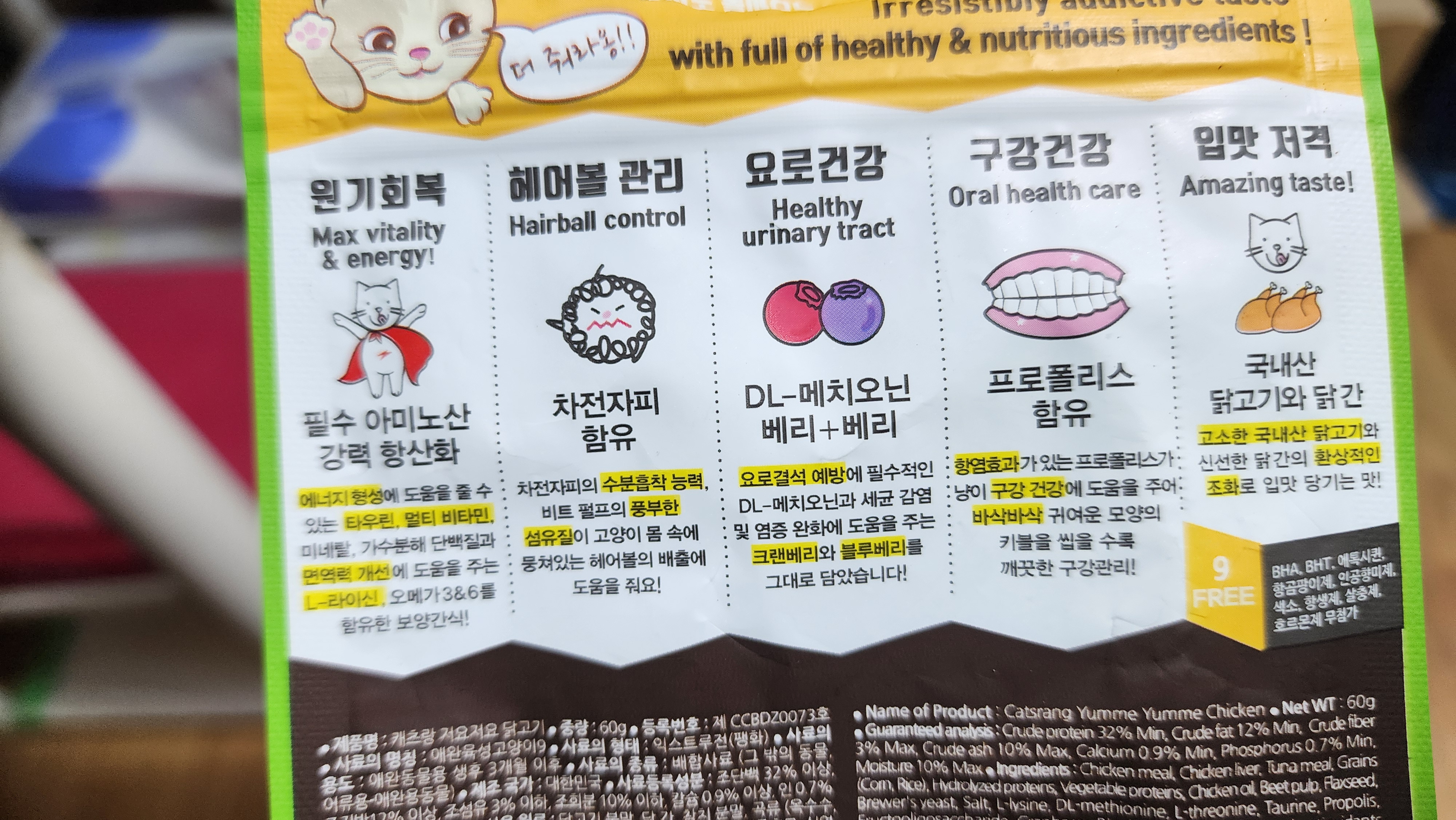 머 좋은건 다 좋다고 하니 일단 아미노산있고, 헤어볼관리도 되고 입맛저격 및 간식인데 구강이 건강?