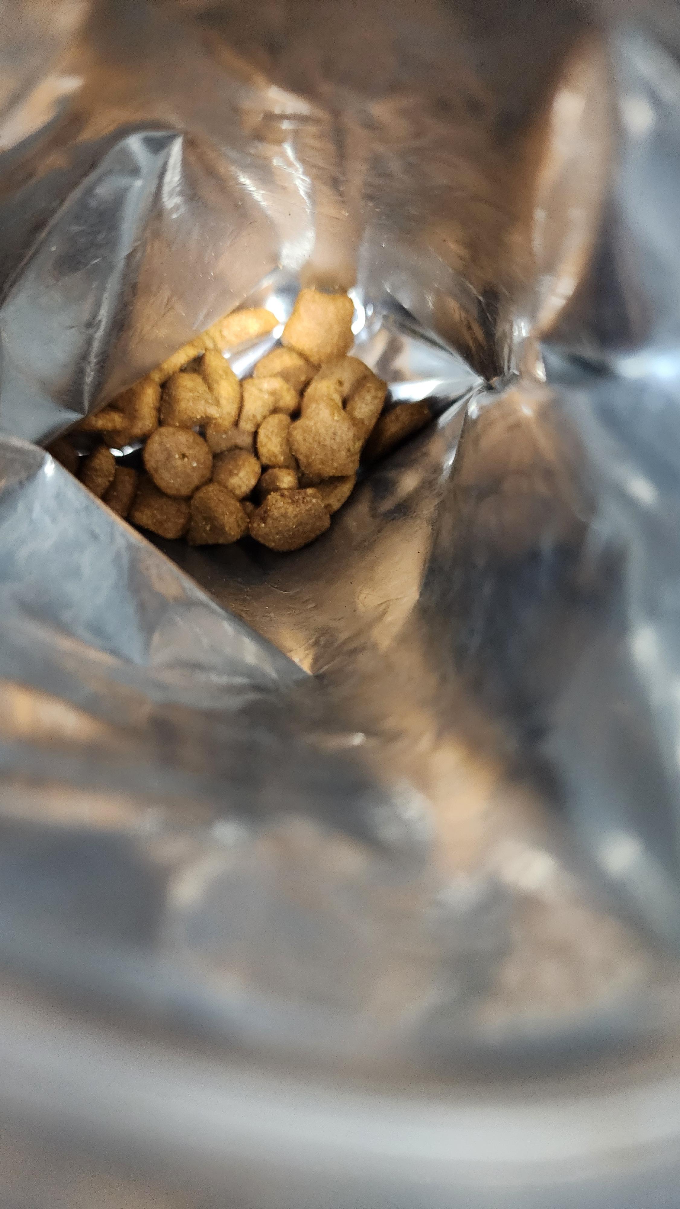 좀 깨졌네? 간식이 이런모양이 아니라 좀 더 모양을 갖추고 있다.