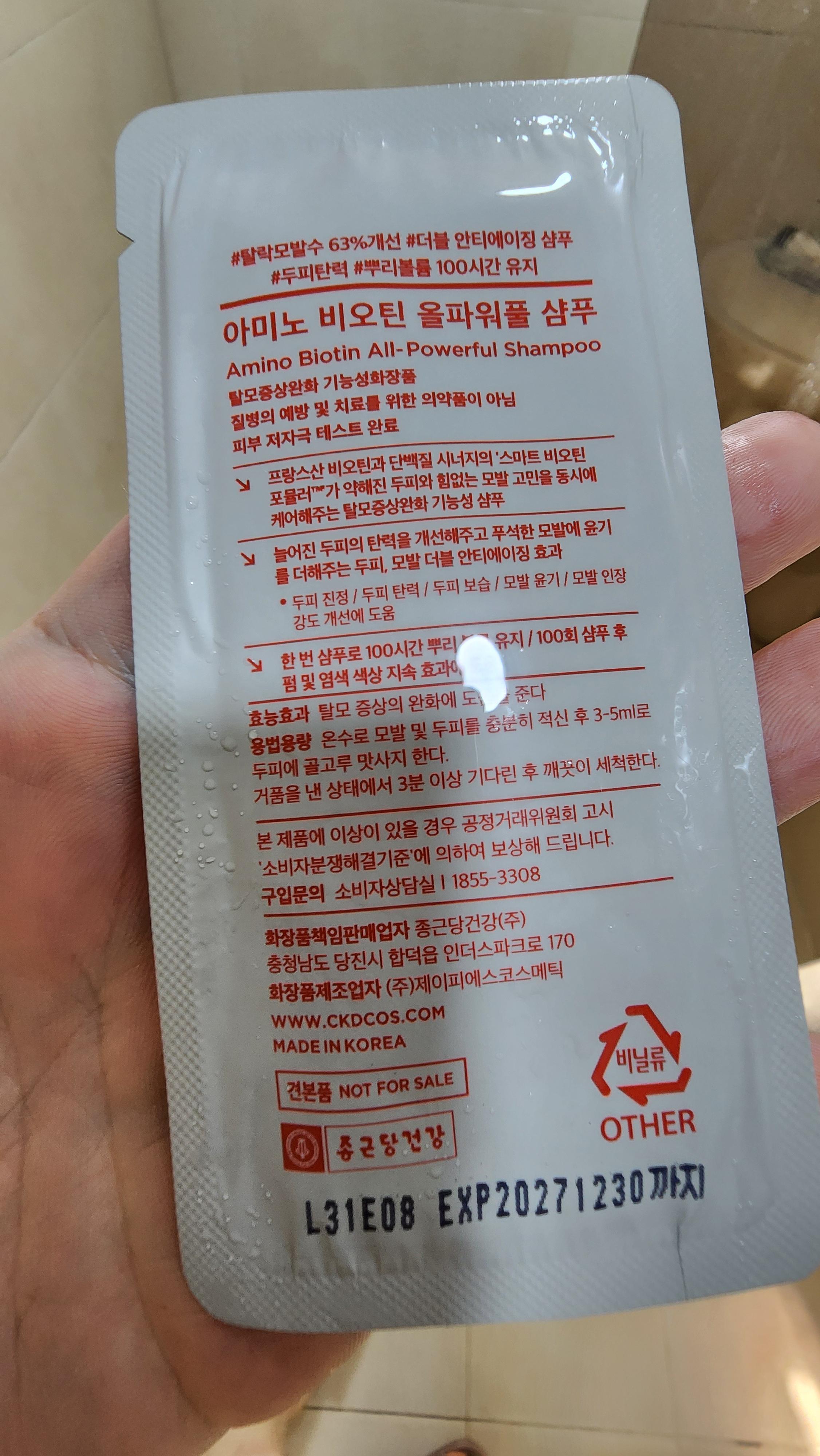 견본품인데 사용해보면 알겠지만 양은 넉넉하다.