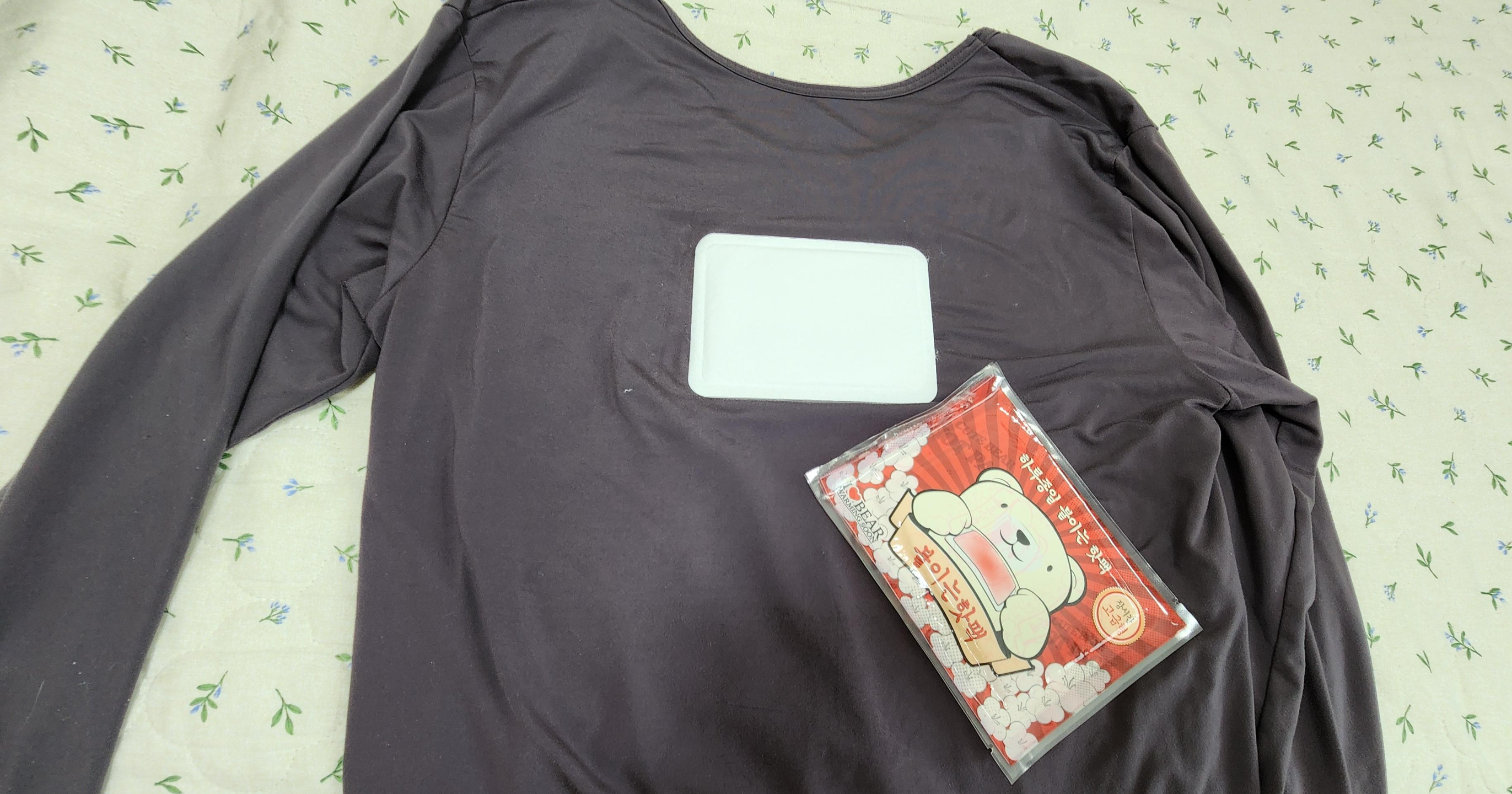 기모내복에 붙이고 다녔는데 움직일땐 정말 따뜻해서 살짝 붙인 부분에 땀이 났다. 영하 5도까지 아주 따뜻하고 좋다.