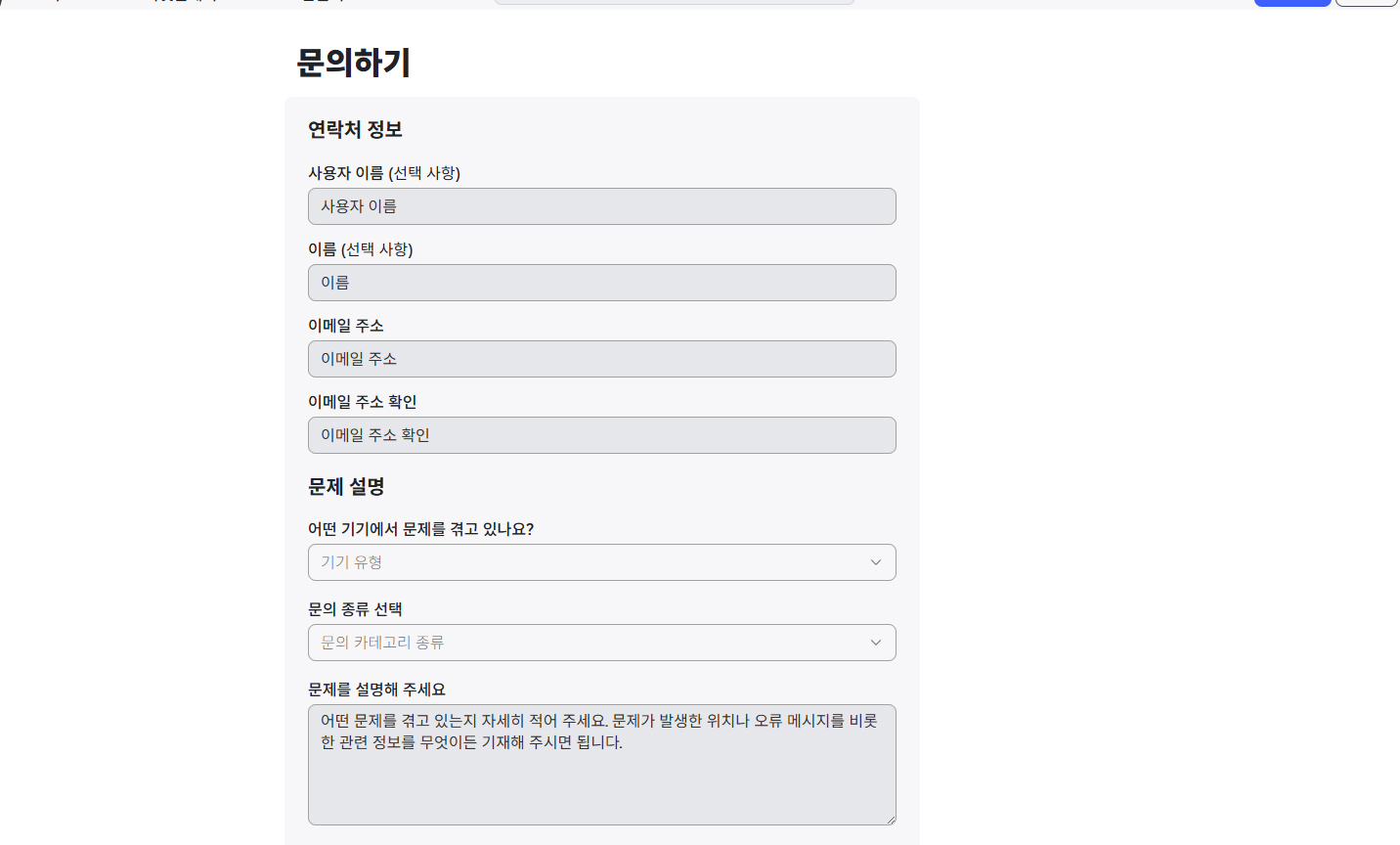 문의하기 찾기도 어렵다. 사이트맵을 통해서 문의하기를 찾았다.